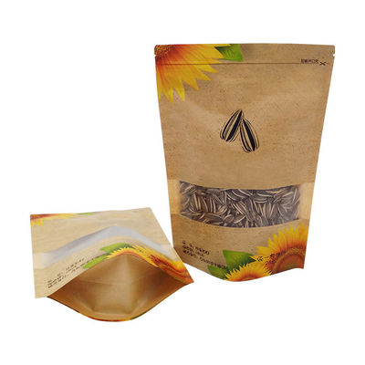जलरोधी पुनः बंद करने योग्य ज़िपलॉक क्राफ्ट स्टैंड अप पॉकेट्स विंडो के साथ सूरजमुखी के बीज के लिए अखरोट खाद्य पैकेजिंग