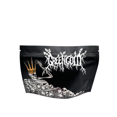 कम MOQ मैट ब्लैक सतह स्पॉट यूवी चमकदार तेल मुद्रण खड़े हो जाओ खरपतवार फूल कैंडी के लिए Mylar बैग